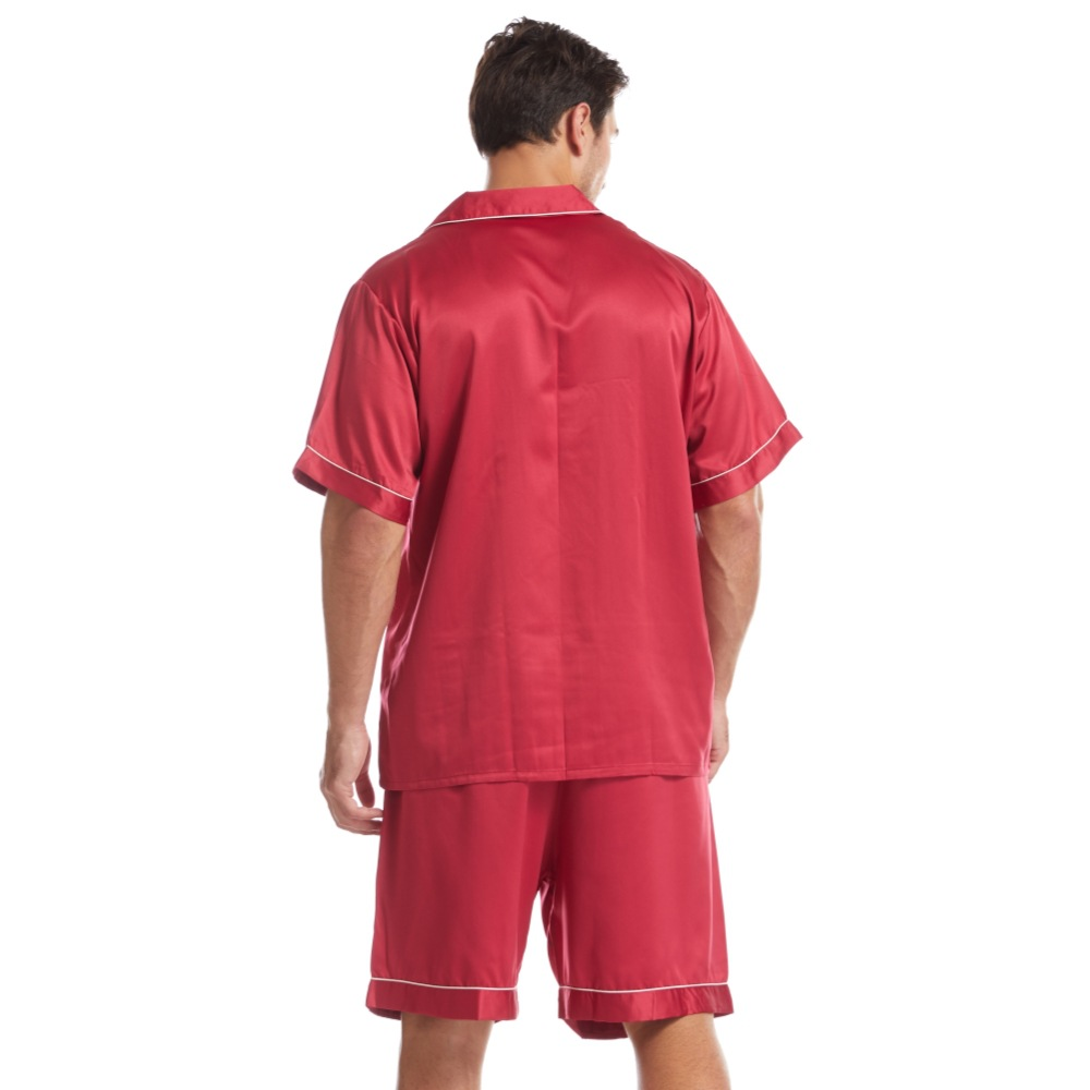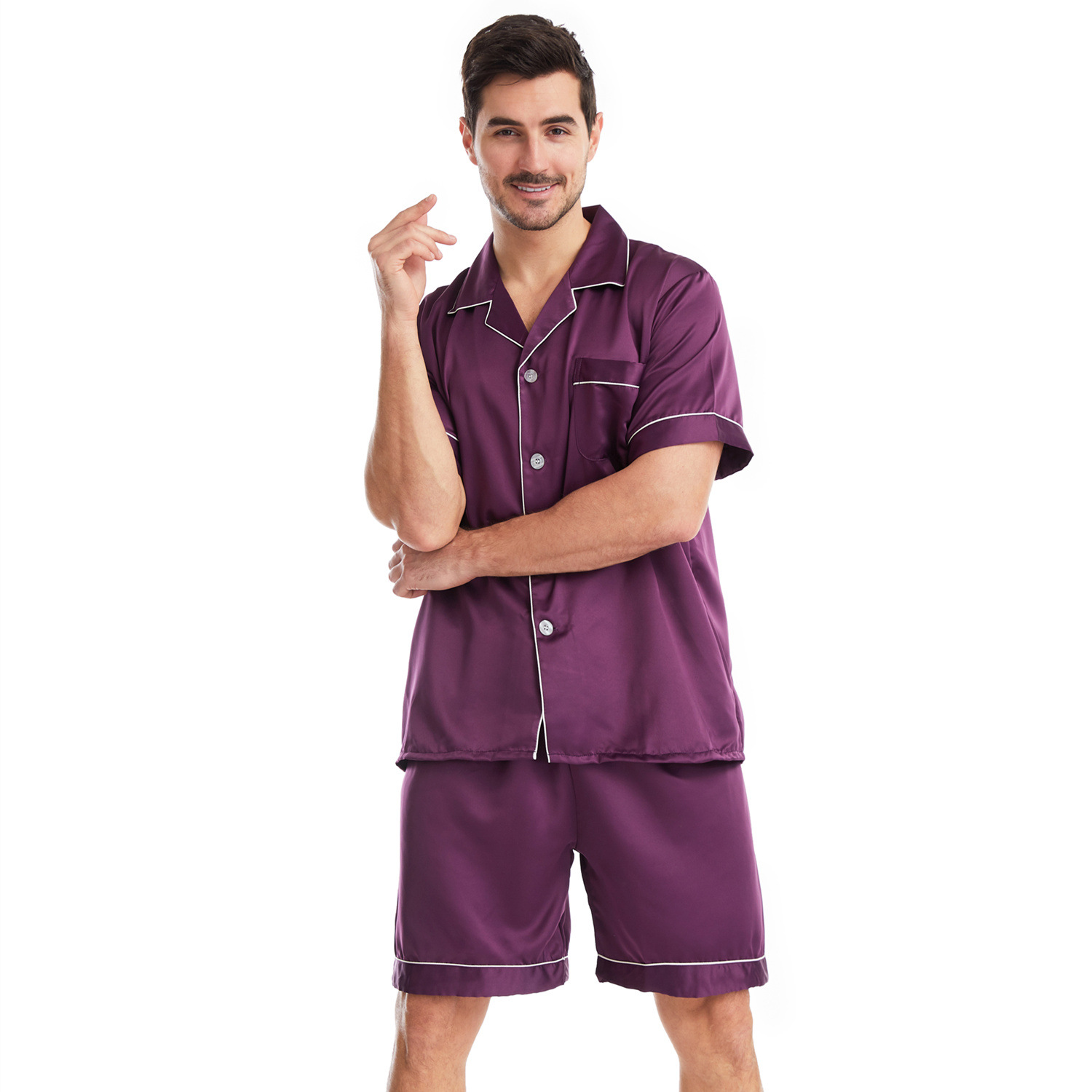 بيجامات رجالية صيفية بأكمام قصيرة بلون سادة ومقاسات كبيرة، طقم ملابس منزلية كاجوال بسيط مع ياقة مطوية بلون غير لامع
