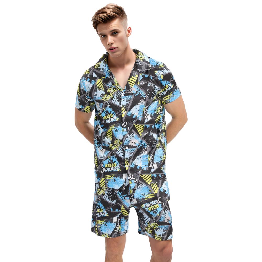 بيجامة رجالية من الساتان بأكمام قصيرة وأزرار مطبوعة ومتوفرة للبيع من Sehe Fashion