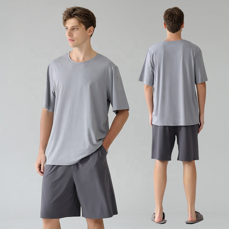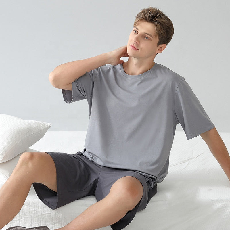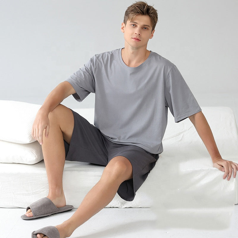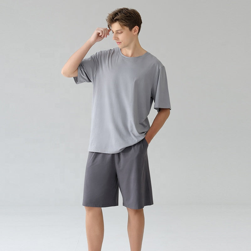 ملابس نوم صيفية للرجال، طقم شورت بأكمام قصيرة من مودال كولنس، بيجامات بمقاسات كبيرة، ملابس للاسترخاء