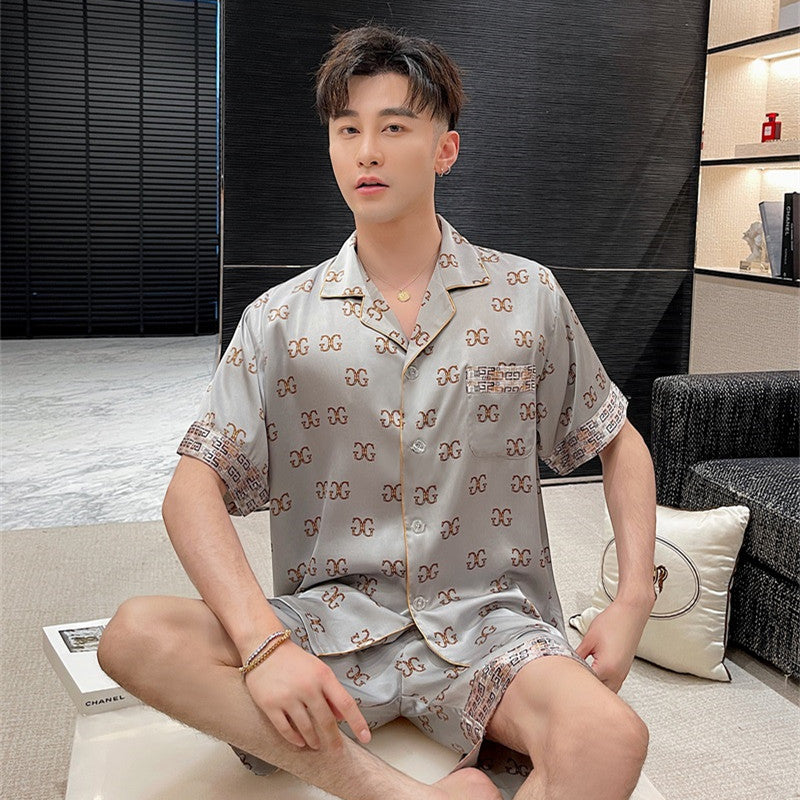 ملابس نوم صيفية بأكمام قصيرة من الحرير الجليدي من Nighty Designs ملابس منزلية بمقاسات كبيرة بيجامات رجالية رفيعة بدلة نوم غير رسمية للأولاد