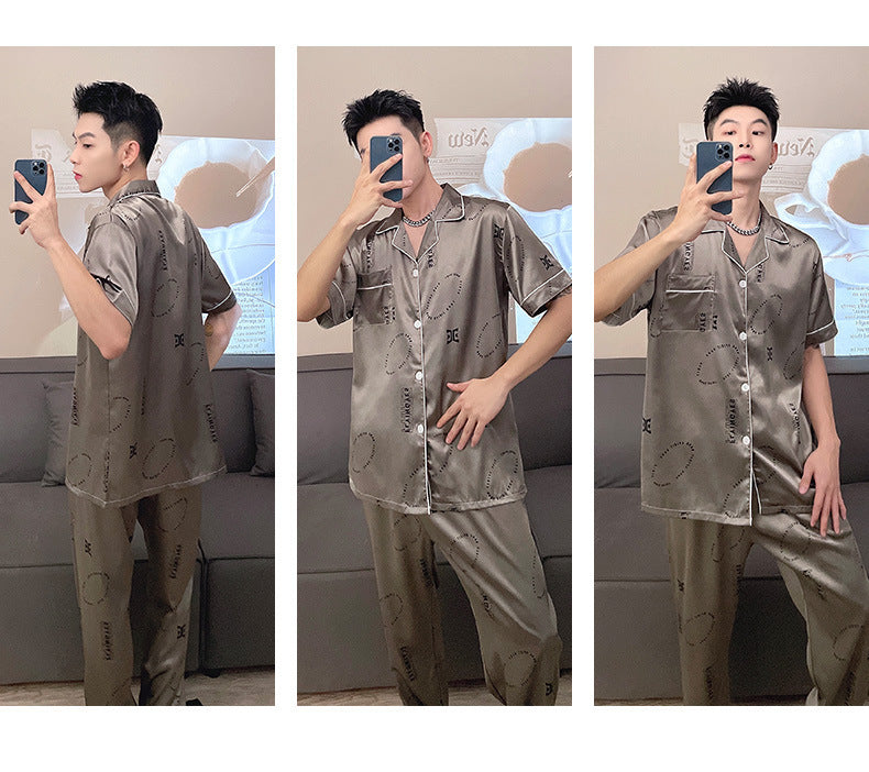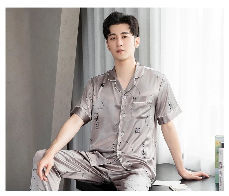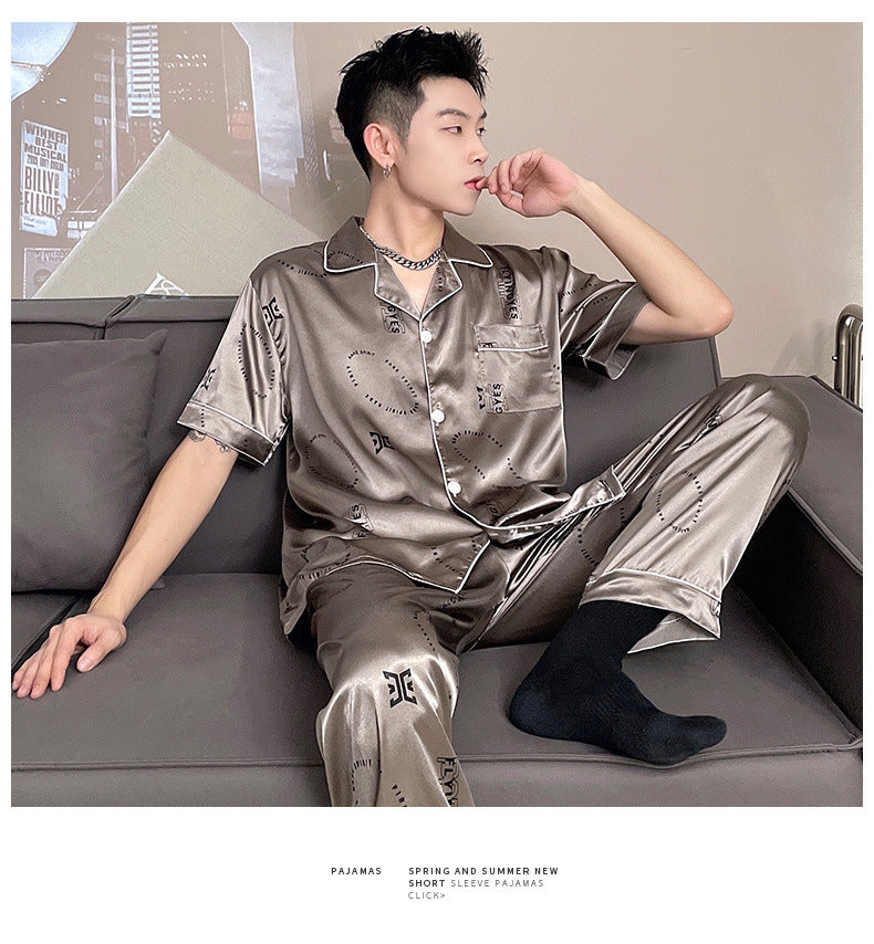 طقم بيجامات رجالي، ملابس نوم، بيجامات من الحرير الجليدي والساتان بأكمام قصيرة، ملابس نوم فضفاضة، ملابس منزلية كاجوال للرجال، مقاس L-5XL، بيجامات مخصصة