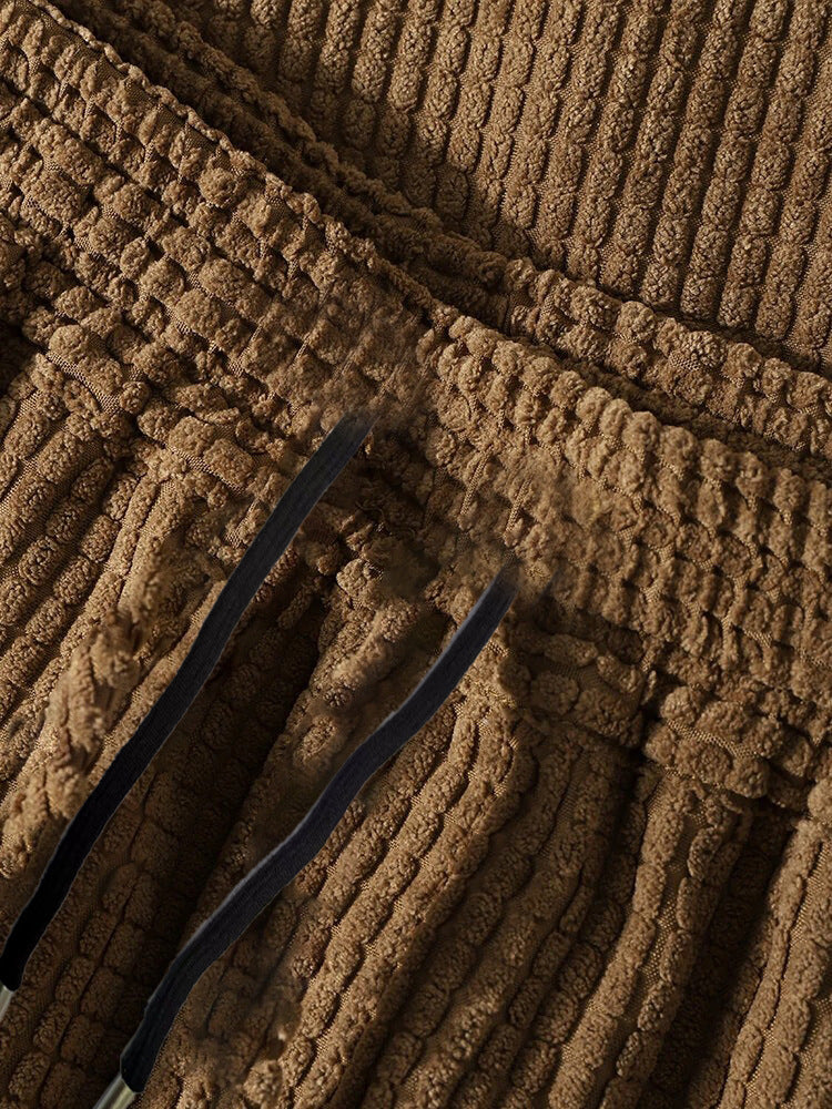 طقم شورت كارديجان بصدر واحد بأكمام قصيرة من قماش مخملي منقوش فضفاض للرجال للربيع والصيف من قطعتين، ملابس الشارع، مقاس S-3XL