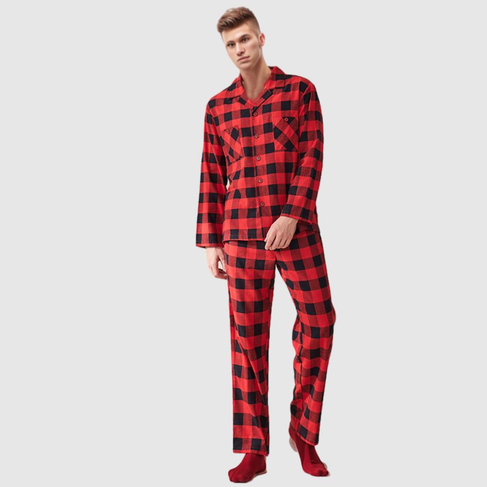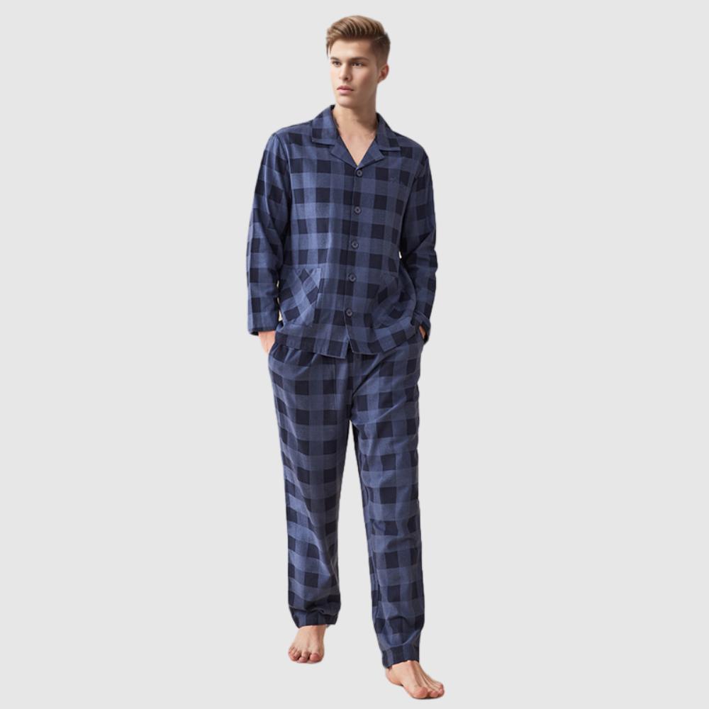 بيجامات رجالية فاخرة من Sehe Fashion E0108ME20 منقوشة للشتاء بأكمام طويلة للحفاظ على الدفء