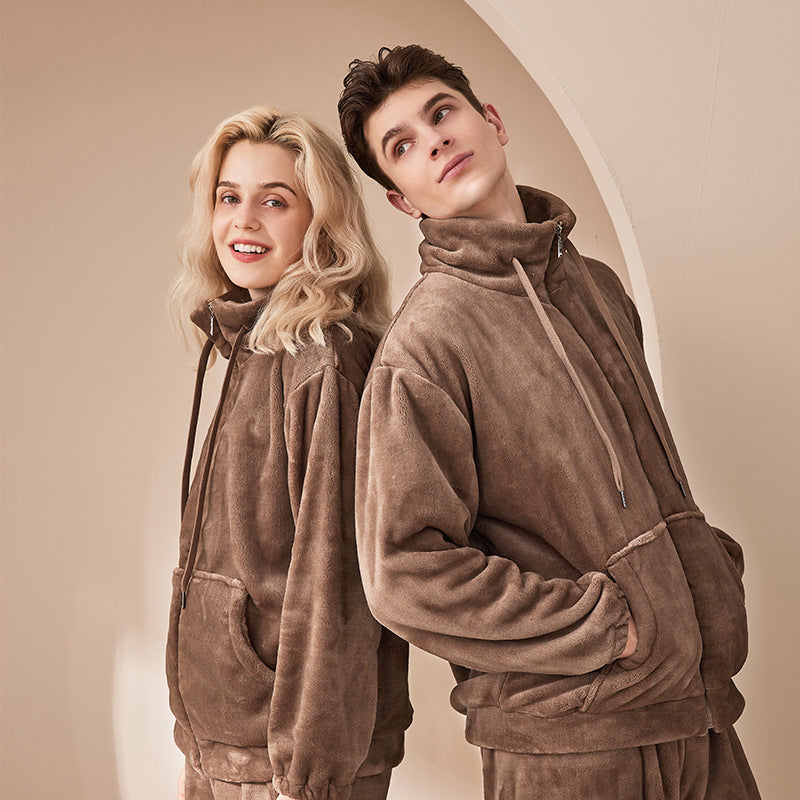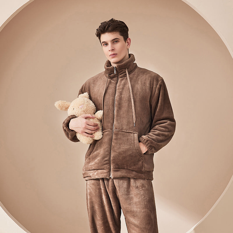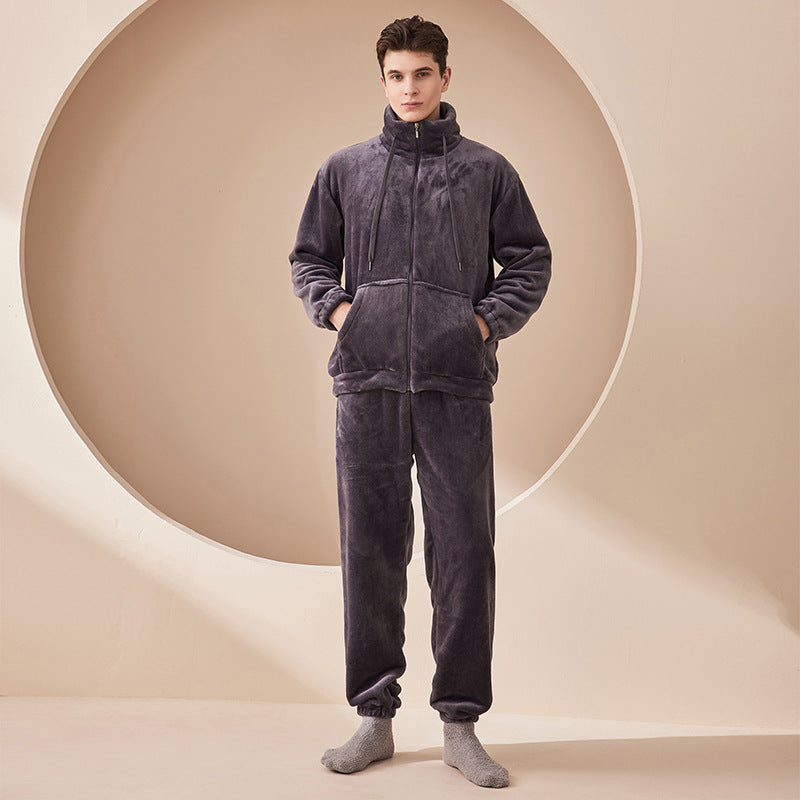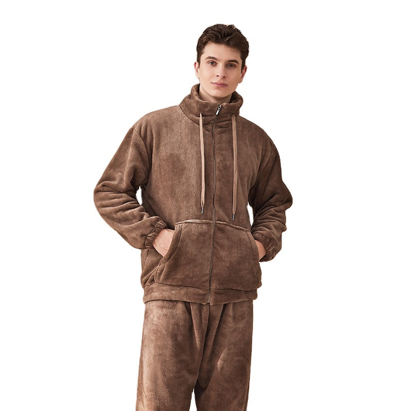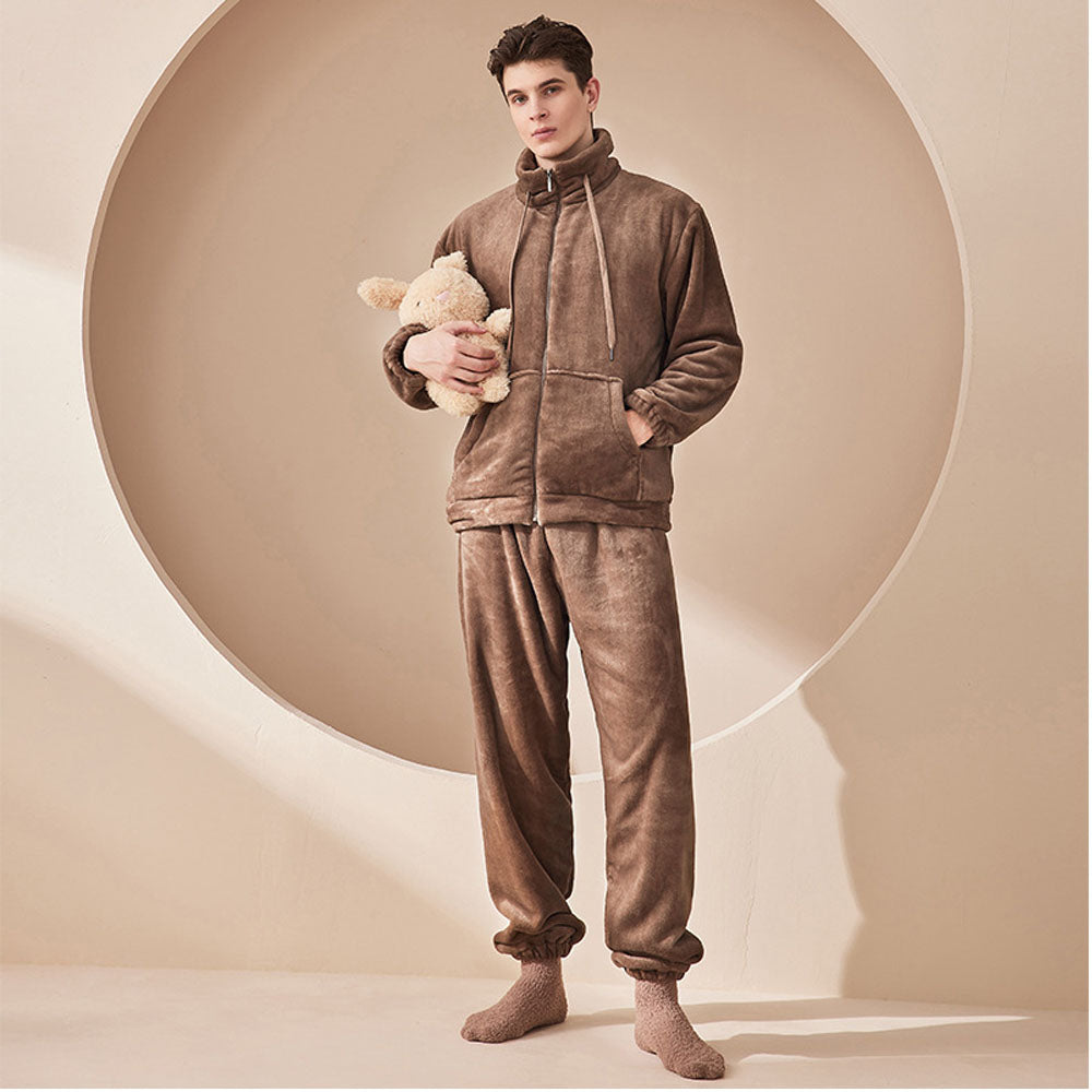 طقم بيجامات رجالي شتوي عالي الجودة من الصوف السميك الدافئ بسحاب غير رسمي من الفلانيل لعام 2022