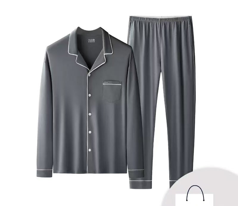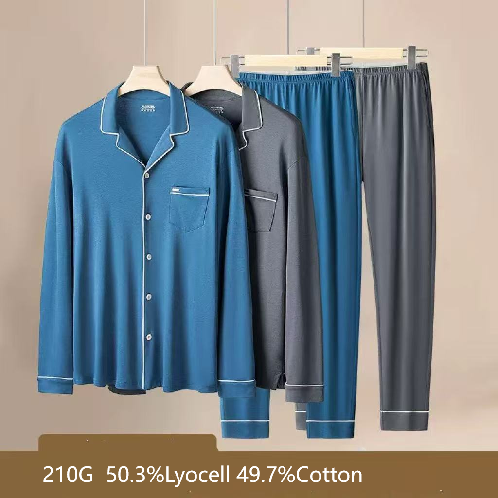 طقم بيجامات مريحة من مزيج القطن من لايوسل لجميع المواسم للرجال ذوي المقاسات الكبيرة، بنطلون محبوك بأكمام طويلة، ملابس نوم منزلية