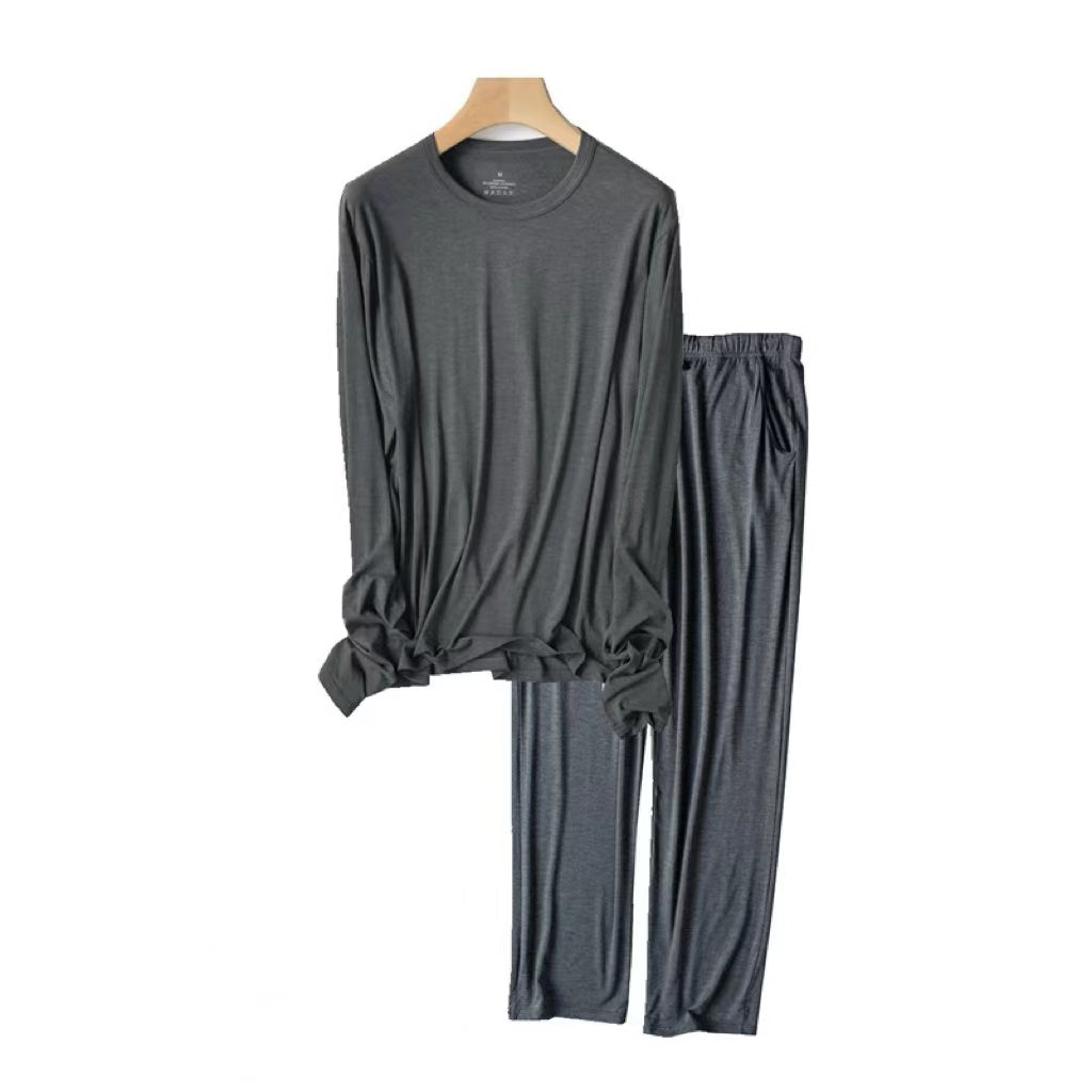 طقم بيجامات رجالي من مودال مقاس كبير 190 جرام مناسب لجميع المواسم، بأكمام طويلة، وبنطلون، وملابس نوم، وبيجامات ليلية للارتداء في المنزل