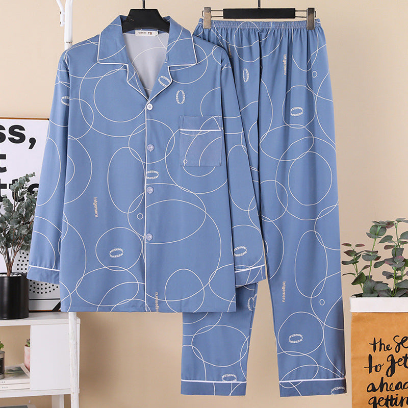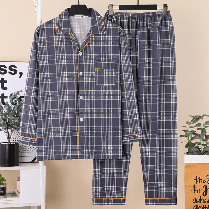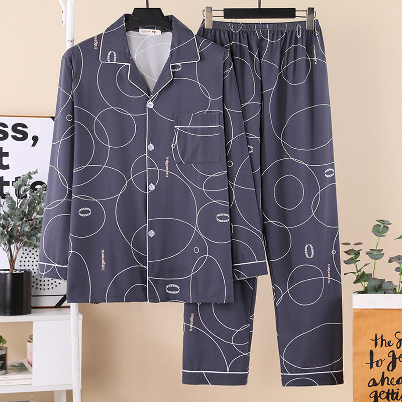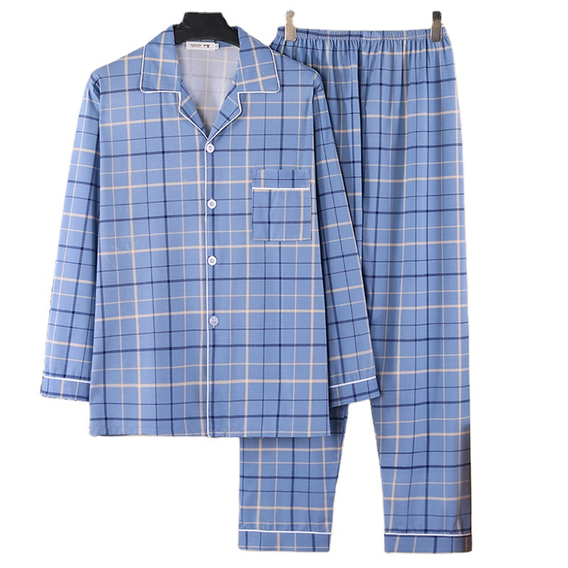 ملابس نوم رجالية مريحة من البوليستر بمقاسات كبيرة ونمط مخطط وبطول كامل وجيوب وياقة أمامية مفتوحة