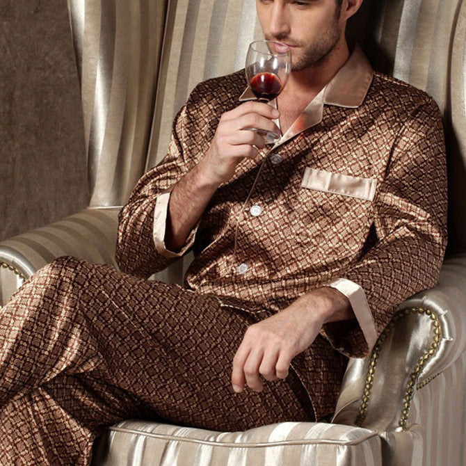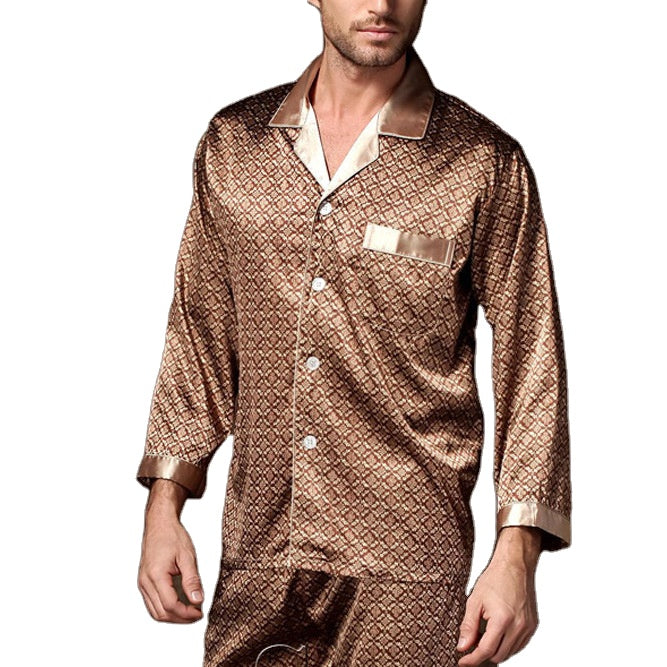 طقم بيجامات رجالي مخصص للربيع والخريف من الحرير الجليدي الرقيق بأكمام طويلة ملابس نوم مقاس كبير ملابس منزلية صيفية XXXL
