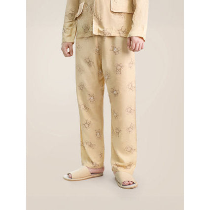 ملابس نوم رجالية طويلة بنقشة ريون، لون أصفر متوسط