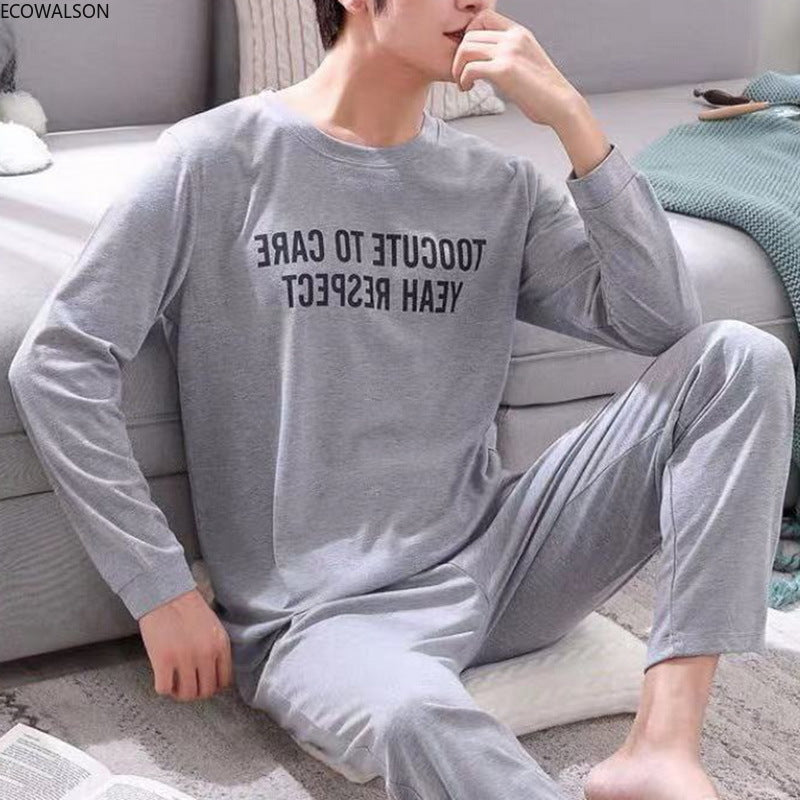 طقم بيجامات رجالي جديد للربيع، بيجامات فضفاضة رقيقة بأكمام طويلة ورقبة دائرية، ملابس نوم مطبوعة للرجال، ملابس منزلية