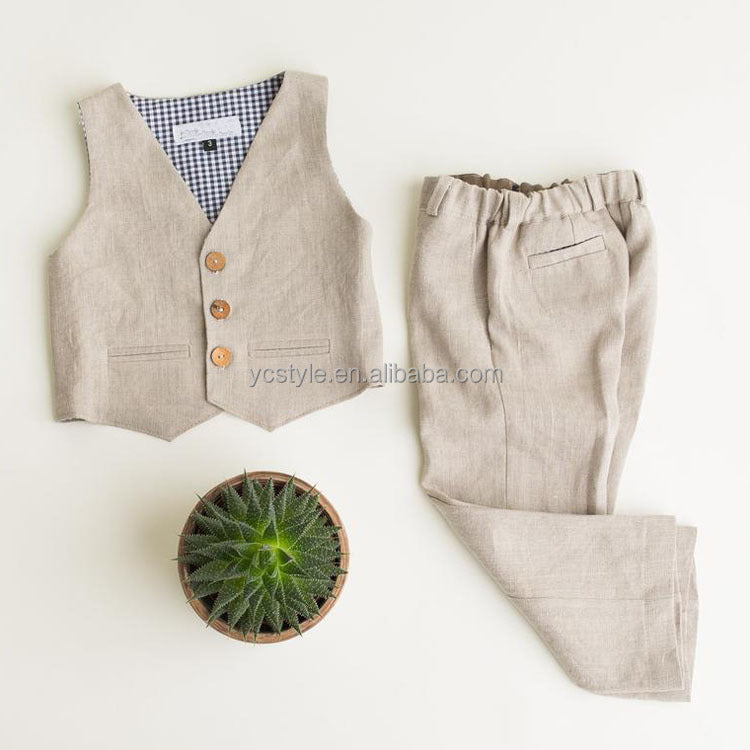بدلة أطفال للأولاد عالية الجودة، ملابس رسمية للأطفال مع أزرار خشبية (صدرية + بنطلون)