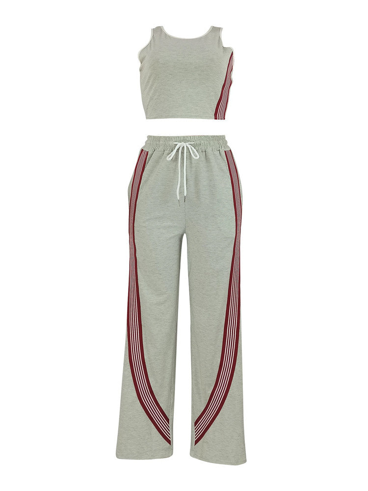 طقم ملابس نسائي رياضي غير رسمي مكون من قطعتين ملابس بدون أكمام قطعة علوية قصيرة مرقعة وملابس رياضية بنطال