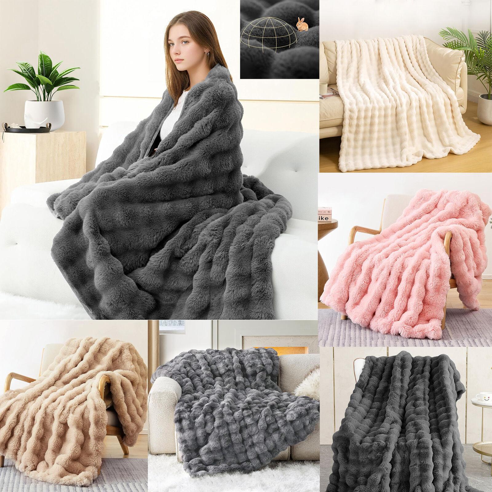 بطانية رمي الفراء الصناعي الفاخرة أفخم Ultra Fuzzy ديكور المنزل للأريكة