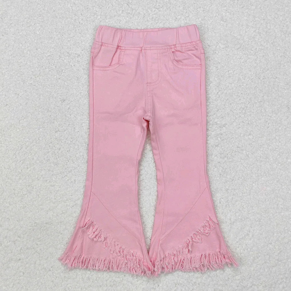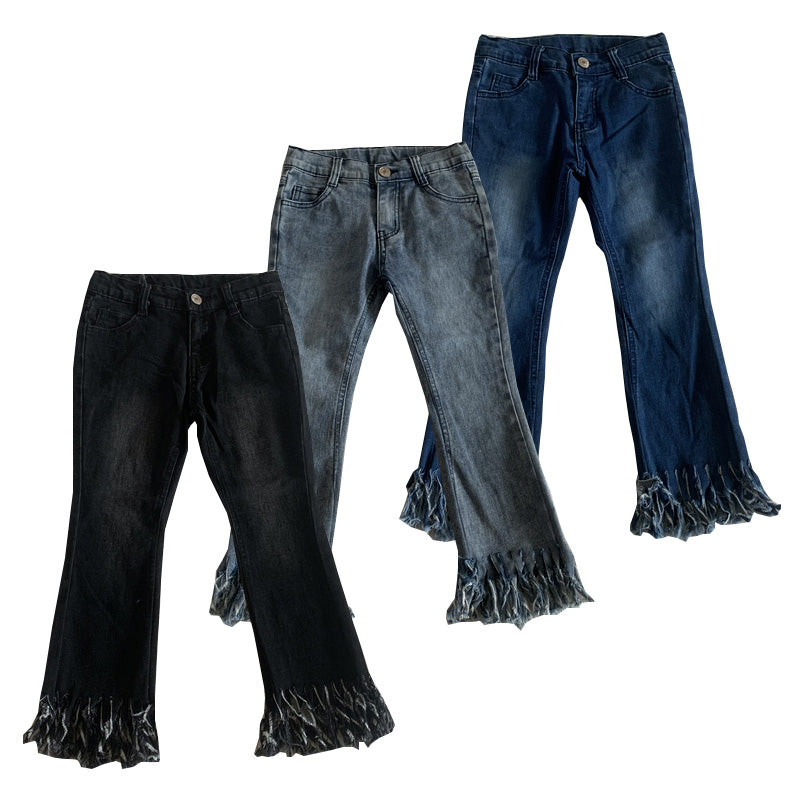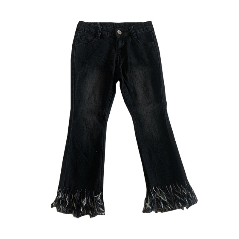 بنطلونات جينز مستقيمة مزينة بشراشيب للبنات الصغار، مصنوعة من قماش الدنيم، أنماط جينز مبيضة، بناطيل أطفال، جينز عصري للبنات