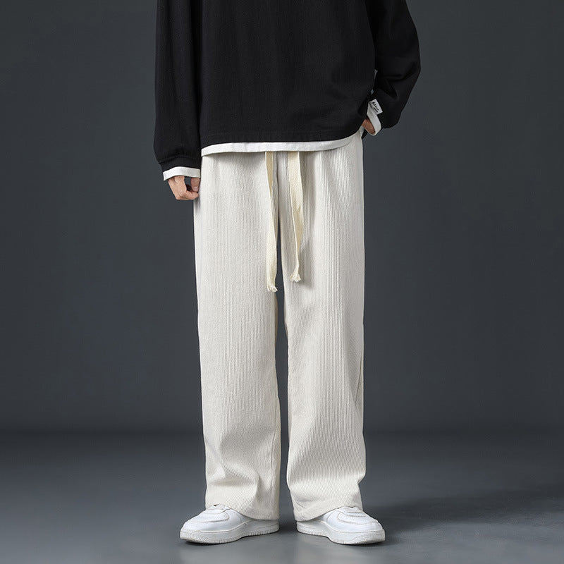 بنطال رجالي كاجوال بقصة مستقيمة، بتصميم أنيق وألوان صلبة، مناسب لفصلي الخريف والربيع، مصنوع من قماش مخملي ناعم، متوفر بأحجام مختلفة،