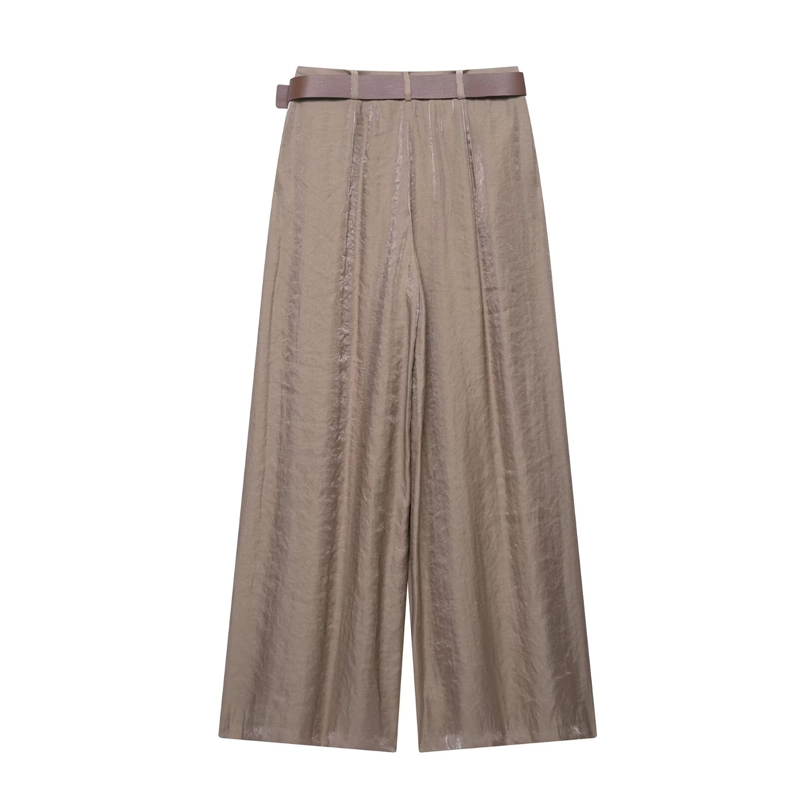 موضة نسائية جديدة على الطراز الأوروبي والأمريكية من Taoop ZA فضفاضة بحزام عالي الخصر بنطلون بساق واسعة