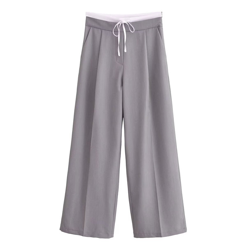 ملابس نسائية من TAOP&ZA خريف 2024 الجديدة، بنطلون واسع الساق ذو خصر مرتفع مزدوج، غير رسمي ومتعدد الاستخدامات 1608225