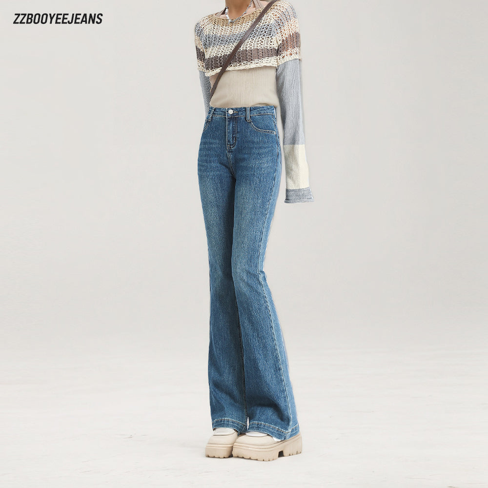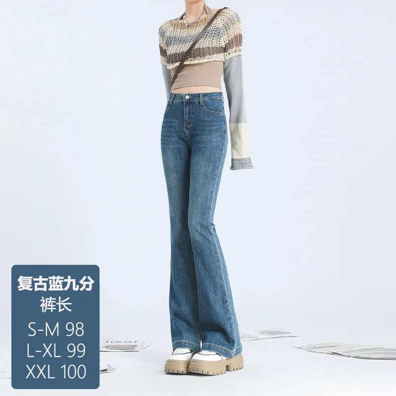 جينز مشتعل بنعل جرس قصير عالي الخصر للربيع/الصيف للنساء صغيرتي جودة ضيقة تناسب الجسم سراويل دينيم كاجوال جيدة التهوية
