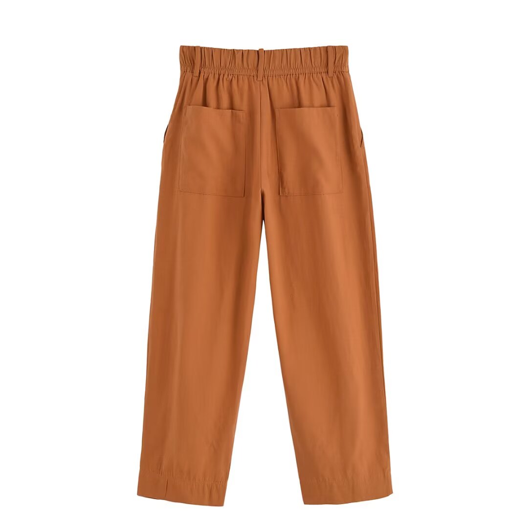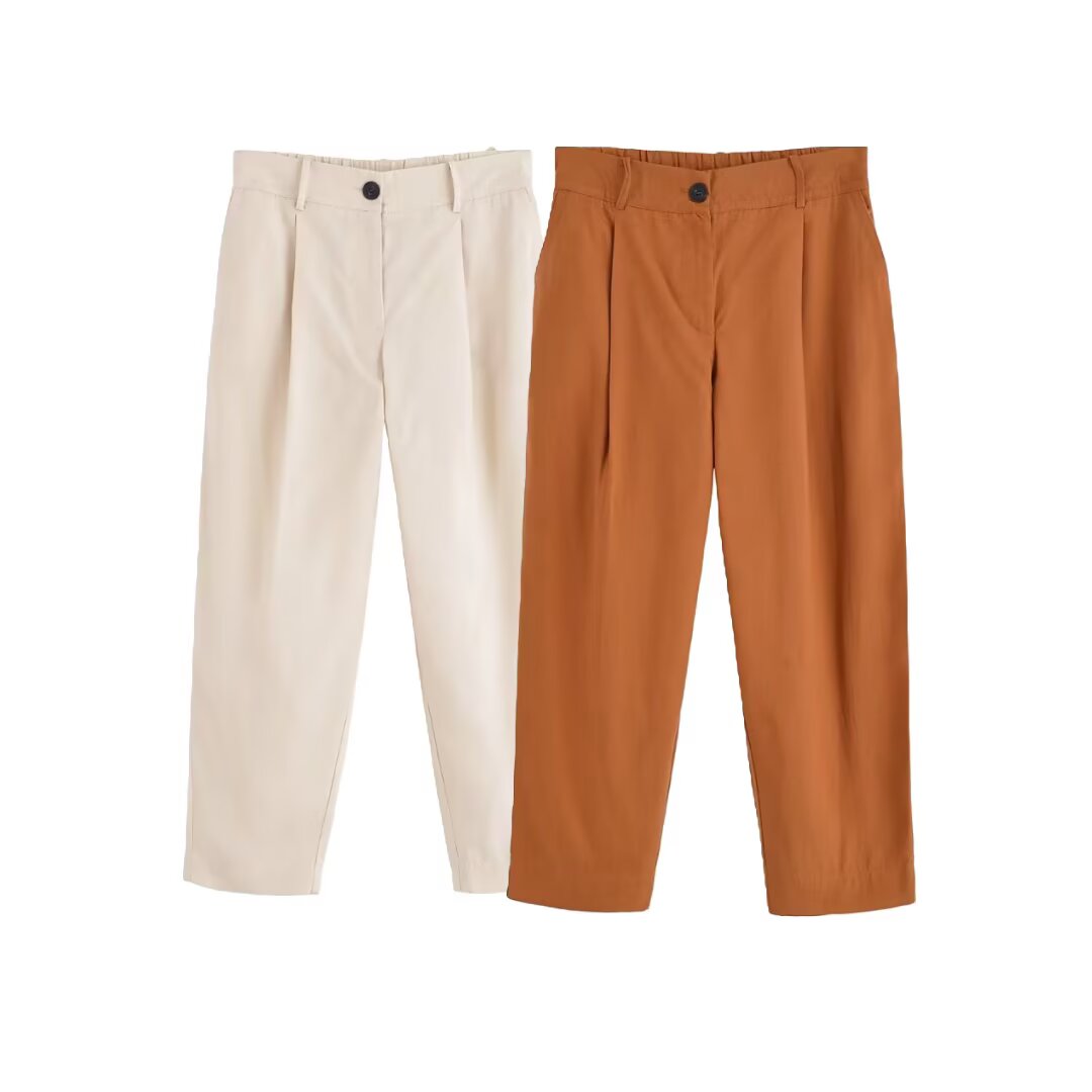 بنطلون نسائي كاجوال مطوي بخصر مرتفع ومرن، تصميم أوروبي وأمريكي جديد لصيف 2025 من TAOP&ZA 8372234 8372134