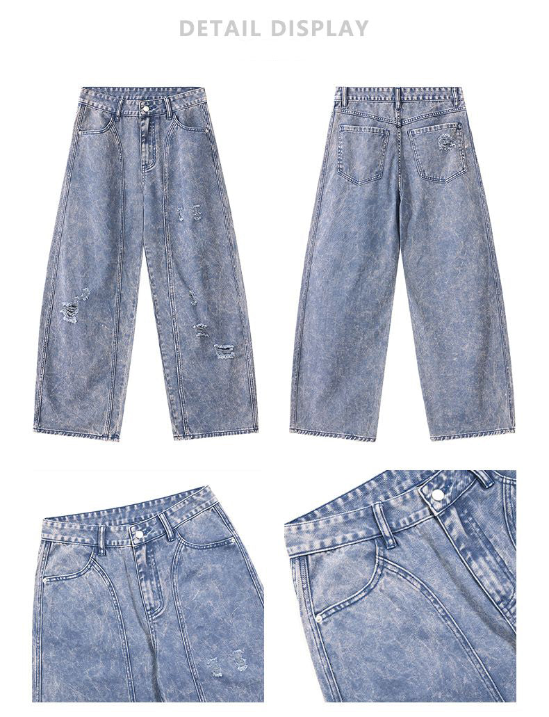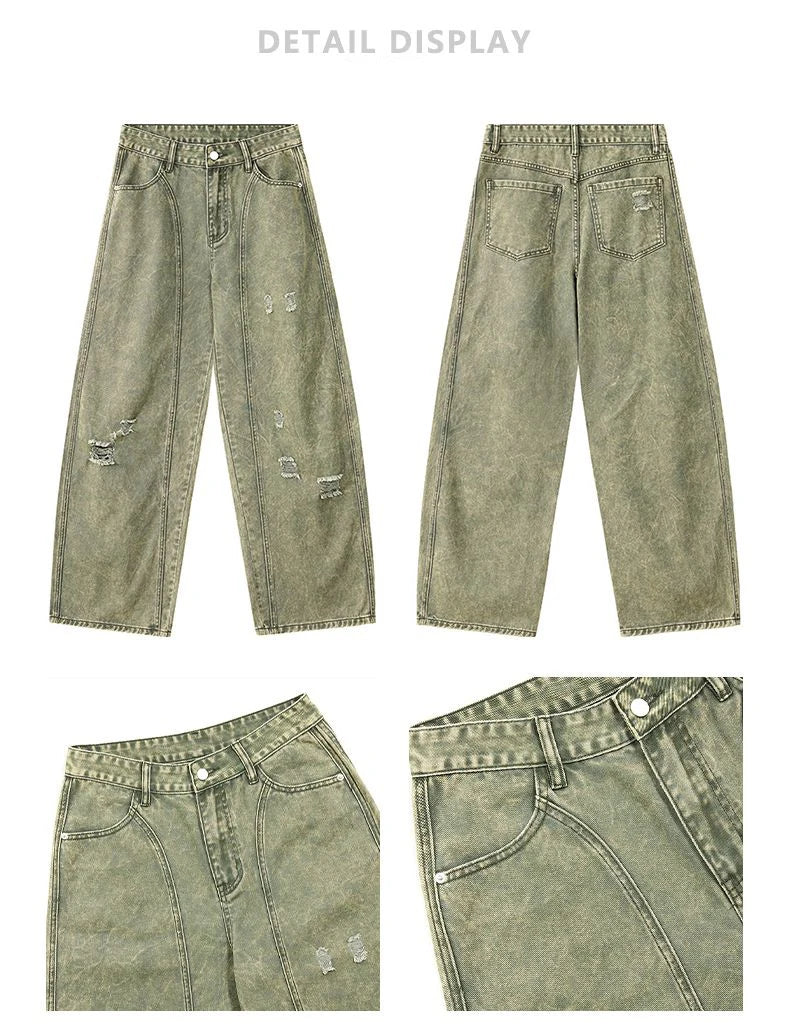 غسول ثقيل التعادل صبغ ماشيتي السراويل الساق واسعة فضفاضة الساق مستقيمة متقدمة الأمريكية الرجعية