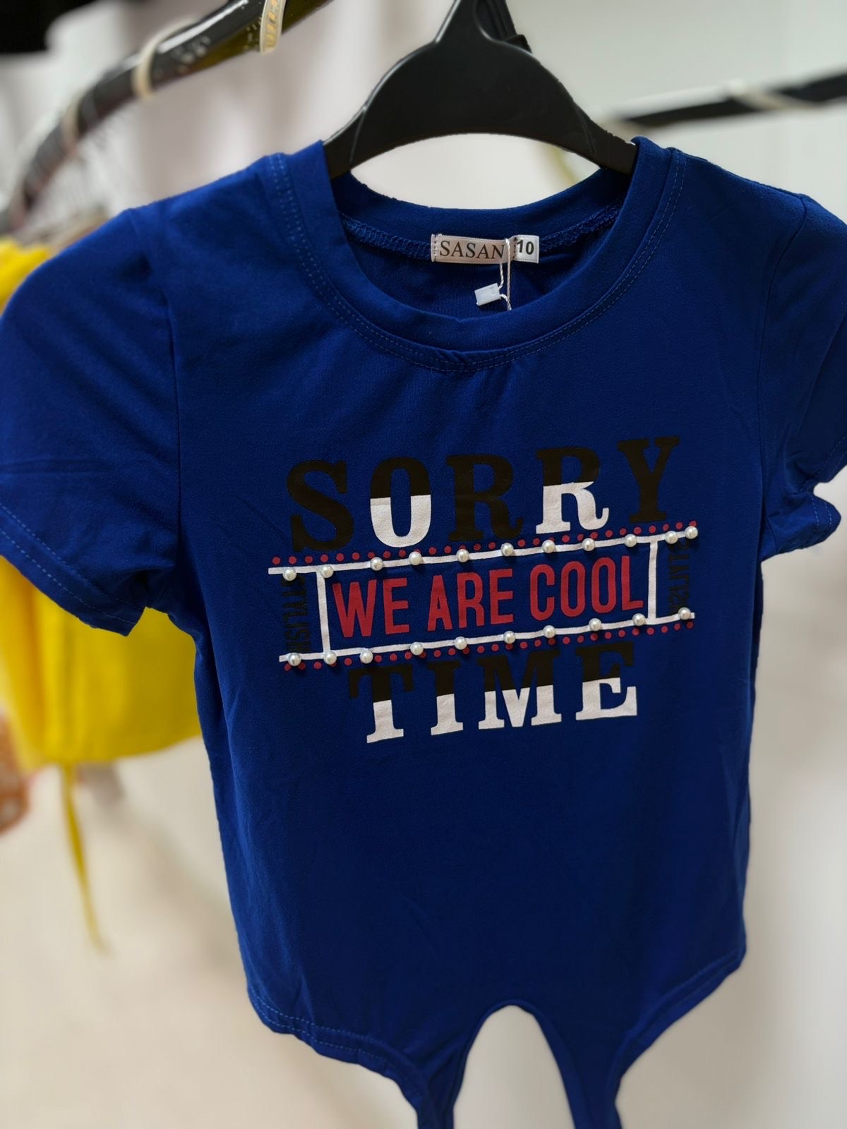 تيشيرت بلون ازرق قطني باكمام قصيرة كاجوال