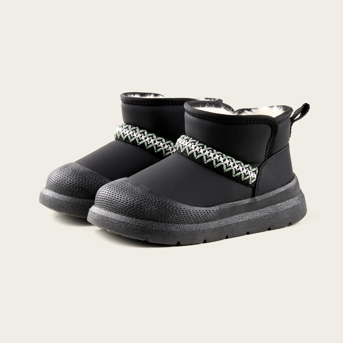 حذاء برقبة للثلج من الفرو الصناعي للأطفال جلد صناعي مقاوم للماء حذاء برقبة للأولاد والبنات من القطيفة للشتاء الدافئ السميك للأطفال المراهقين