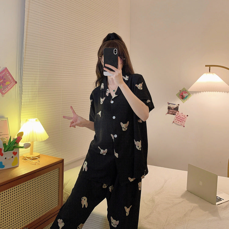 طقم بيجامة نسائية من 3 قطع رائج بمقاس كبير ، طباعة حيوانات أليفة لطيفة فضفاضة ومريحة عصرية 3XL-6XL ملابس منزلية