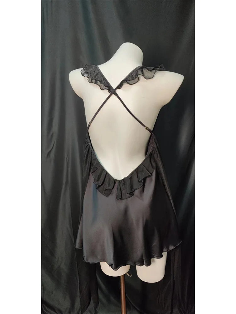بيجامة ساتان مثيرة جديدة مع وسادات للصدر، تصميم فاخر يثير الشغف، قميص نوم راقي وممتع