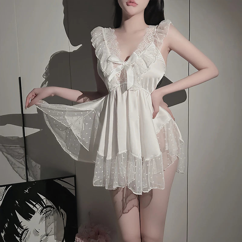 ملابس نوم نسائية مثيرة للربيع والصيف من الحرير الجليدي بحمالات رقبة وظهر مفتوح مع دانتيل وتصميم شبكي مثير للارتداء في المنزل