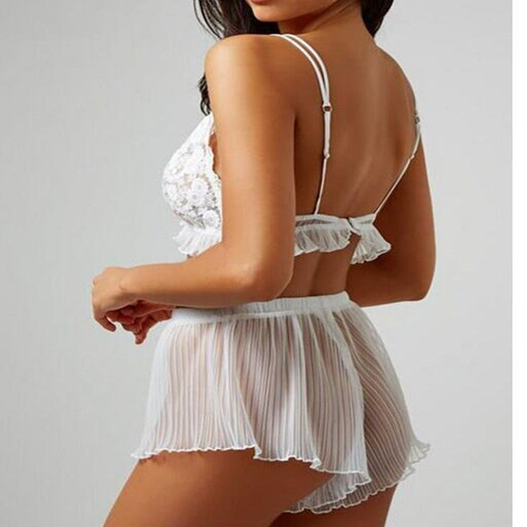 بيجامة نسائية مثيرة من الدانتيل الأبيض, بيجامة نسائية مثيرة من الدانتيل الأبيض الشفاف