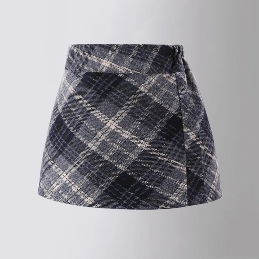 تنورة IDGIRLS للفتيات عالية الخصر ومزدانة بنقشة مربعات من الصوف الأحمر