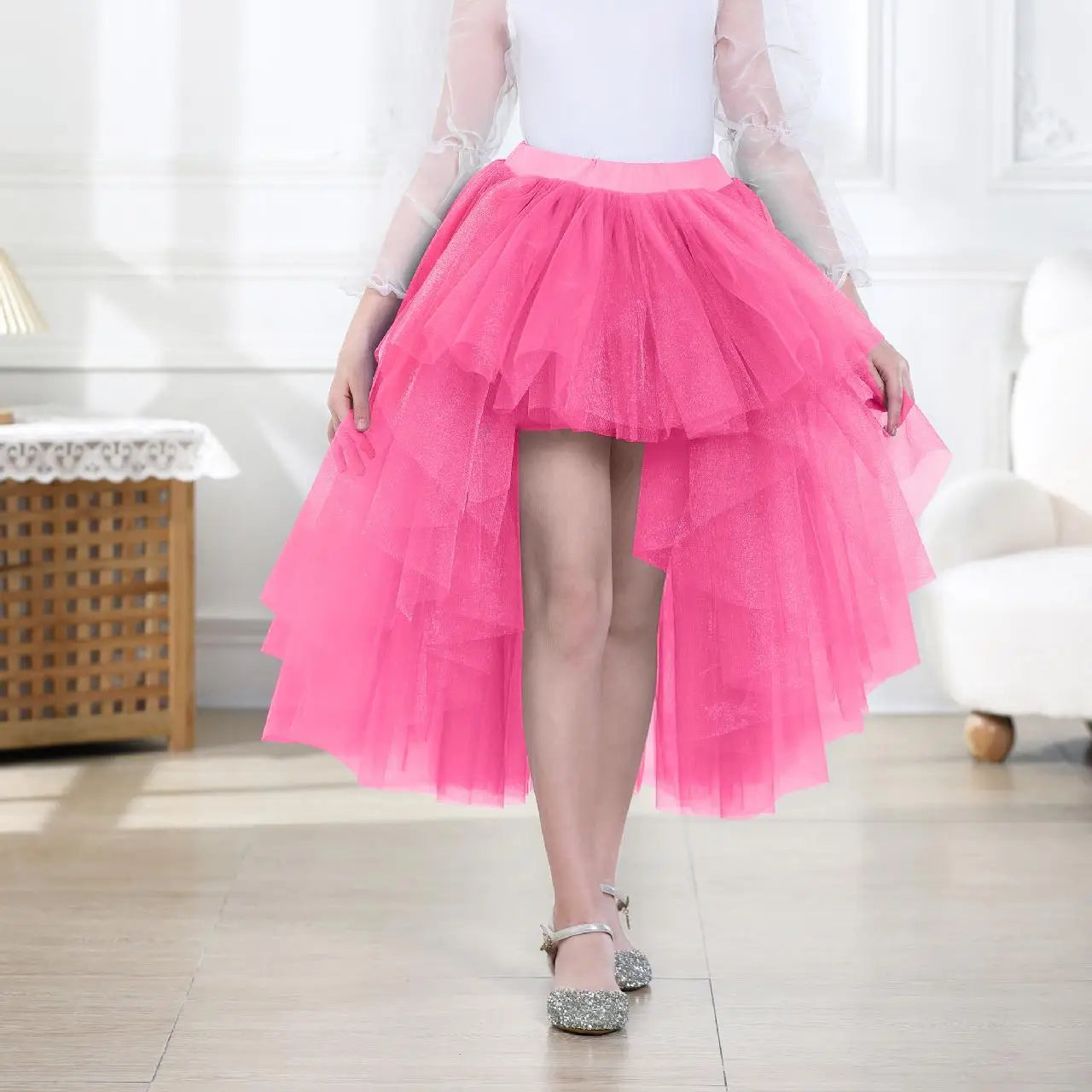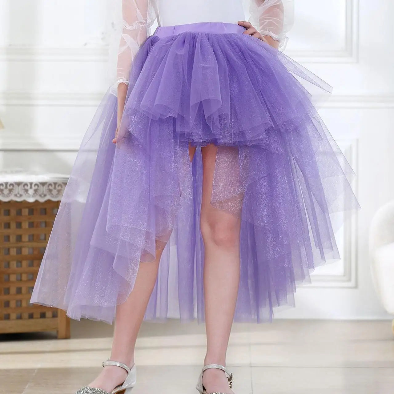 5-12y تنورة خفيفة متدفقة للبنات رائعة من الحرير سهرة فستان حفلات أداء فستان تنورة شبكية غير متماثلة