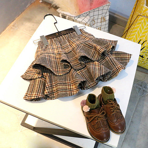 تنورة للأطفال من الصوف منقوشة بألوان سادة مصبوغ من الميكا للبيع بالجملة من المصنع على الطراز الكوري ملائمة للفتيات الصغيرات