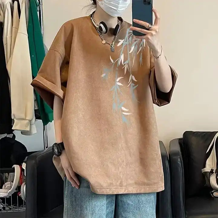 Men's Short Sleeve Suede T-Shirt Loose Pullover Classic Summer Outerwear Harajuku O-Neck Men's Casual Plus Size