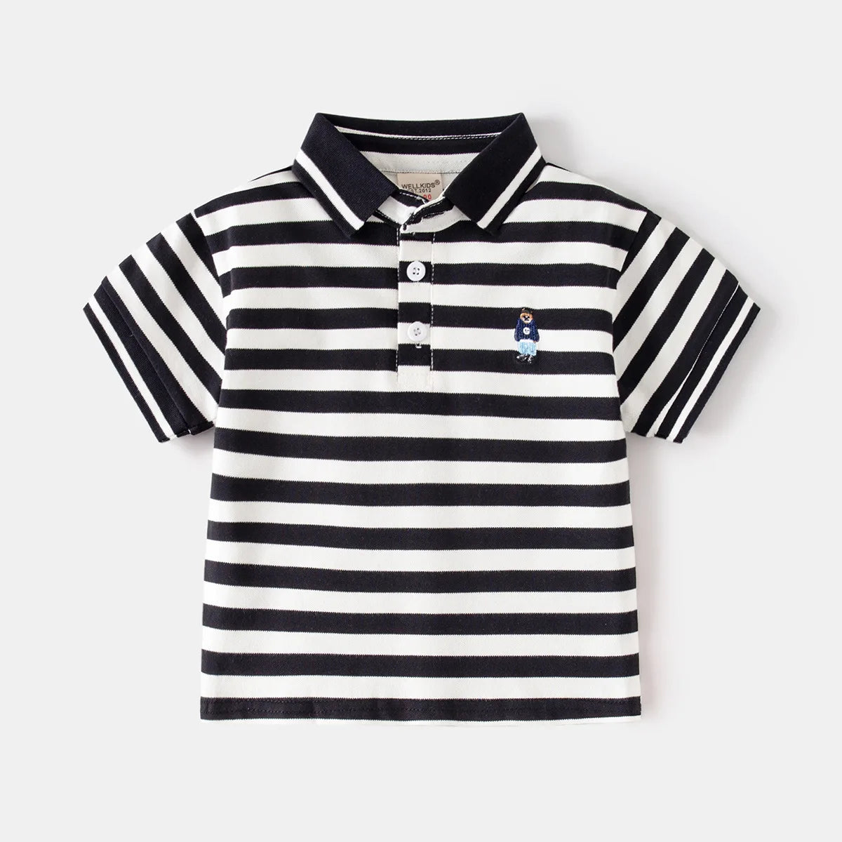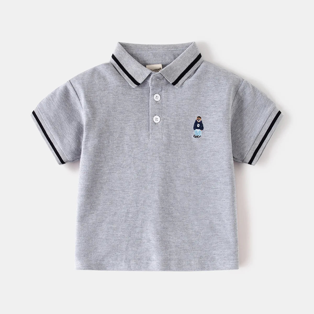 تي شيرت كاجوال بأكمام قصيرة للأولاد موضة جديدة كرتونية محبوكة بياقة مدورة بنمط سادة ملابس أطفال علوية
