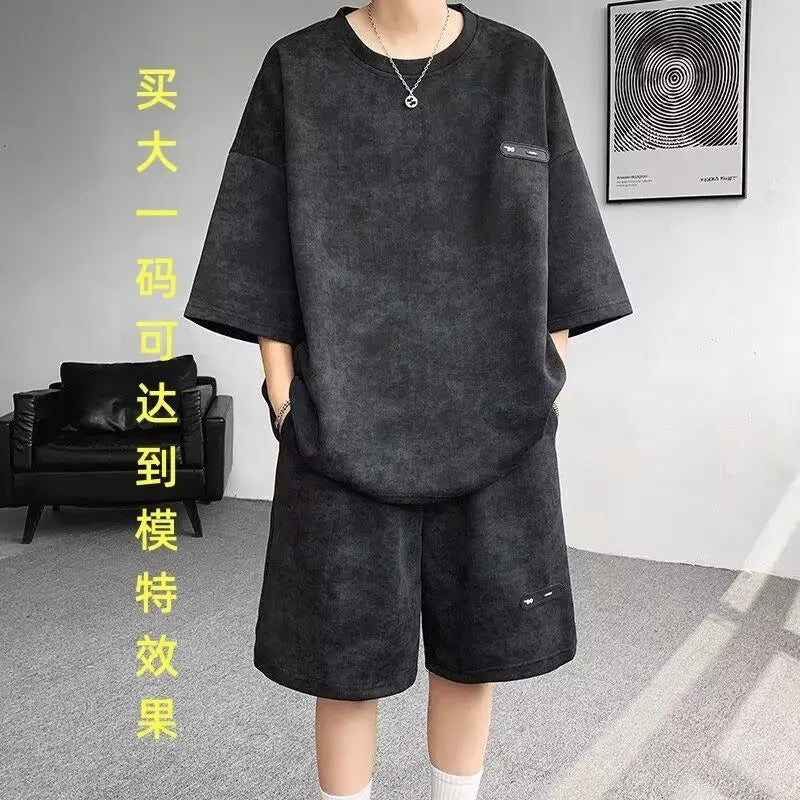 تي شيرت صيفي رائج بتصميم رائع للرجال بأكمام ثلاثة أرباع بأكمام مربوطة بصبغة ربطة عنق كاجوال مسامي مقاس كبير ملابس مطبوعة