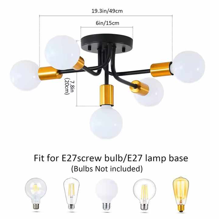 Modern Nordic Pentagram Chandelier Indoor Metal Gold Black Hotel Surface Mounted Ceiling Light Iron Base