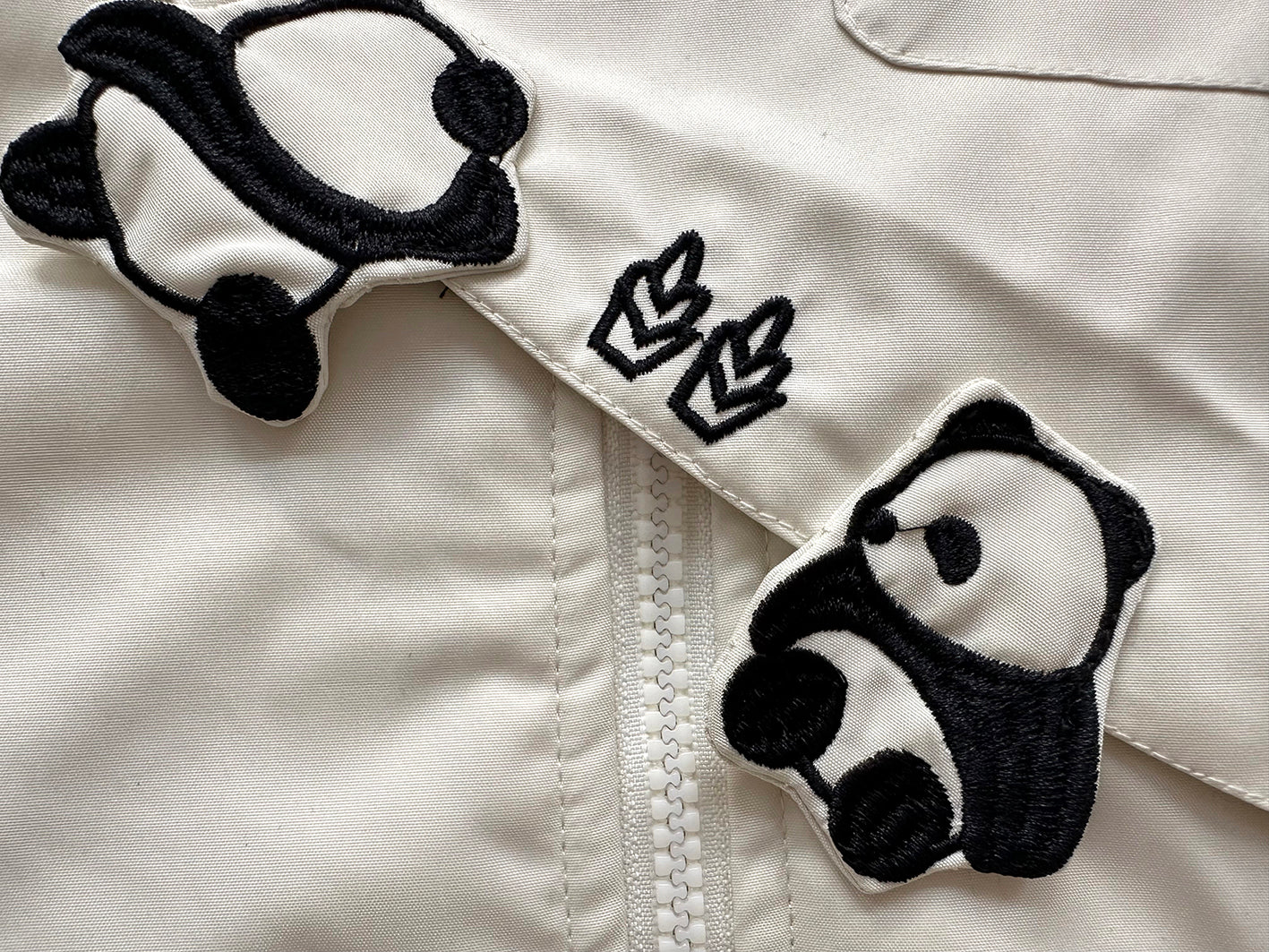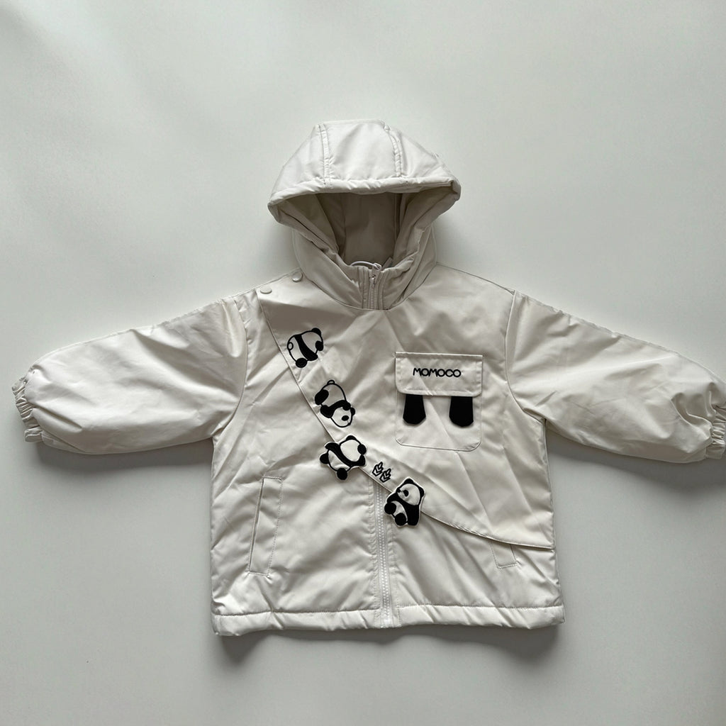 جاكيت خريفي شتوي للأولاد والبنات مع تطريز الباندا، لون موحد جديد مع غطاء للرأس،سريع، سعر منخفض، زخرفة عصرية