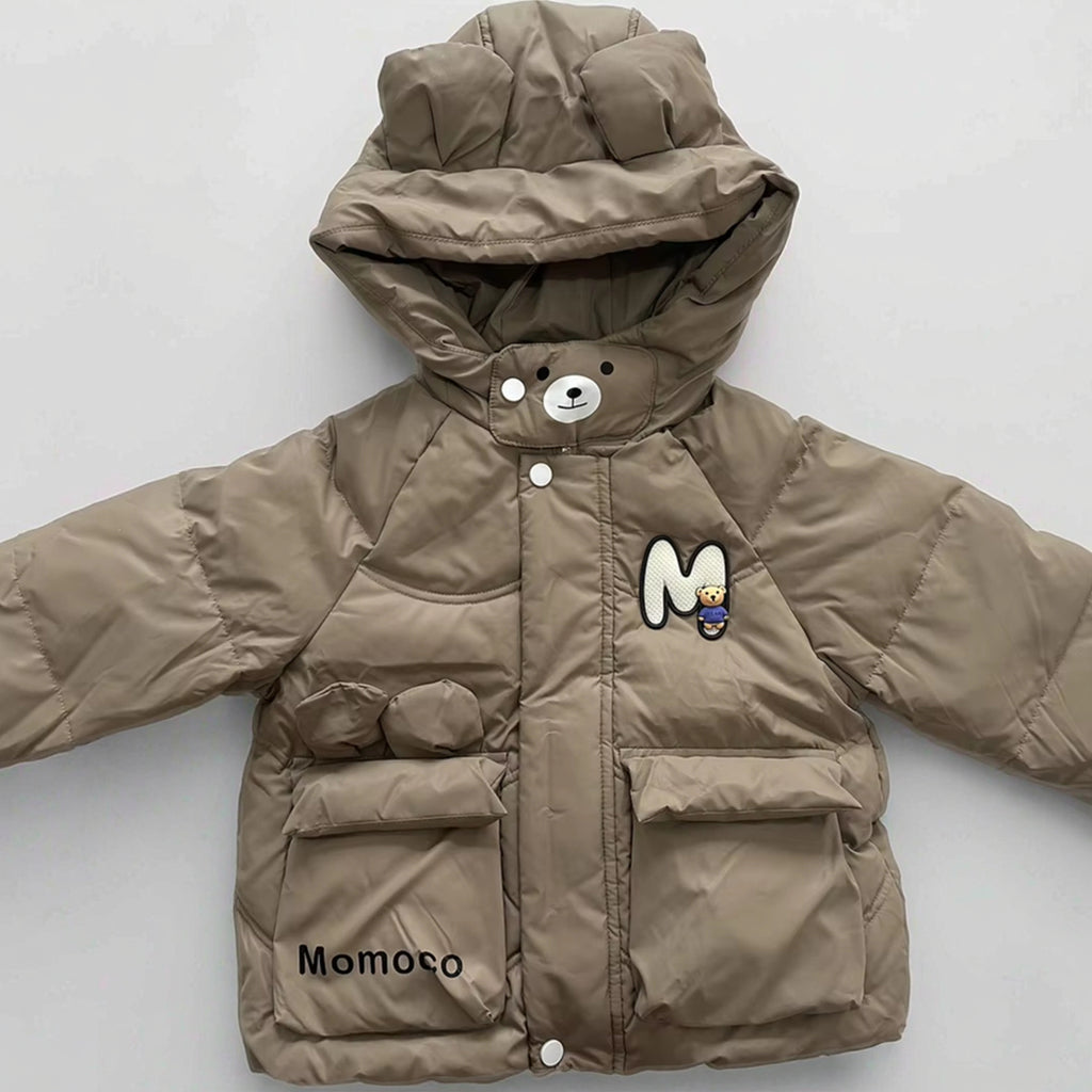 عالية الجودة على الطراز الكوري سترة أسفل للصبيان الصغار لعبة الشتاء الزخرفية بلون واحد سميكة الرياح طوق مقنعين