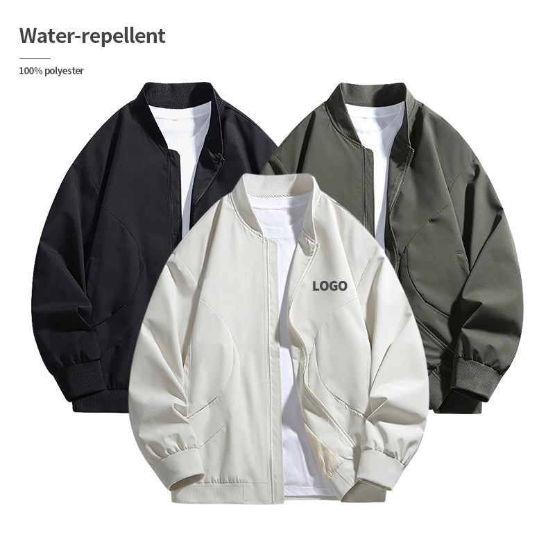 جاكيت رجالي بشعار مخصص من شركة تصنيع المعدات الأصلية ، جاكيت مقاوم للماء ، جاكت رياح بنمط البيسبول من البوليستر بسحاب لأعلى ، ملابس الشارع