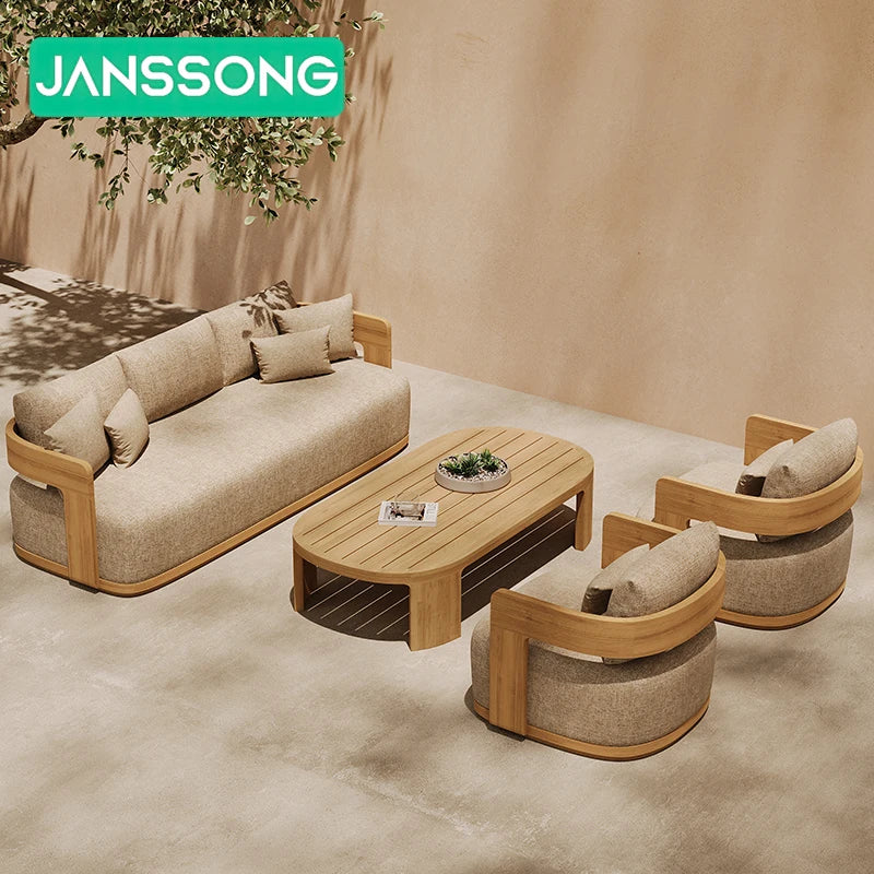 أريكة خارجية من خشب الساج للفنادق ، أثاث للحدائق والمنتجعات ، أرائك فيلا موردن ، أريكة خارجية ، أثاث خارجي للفناء