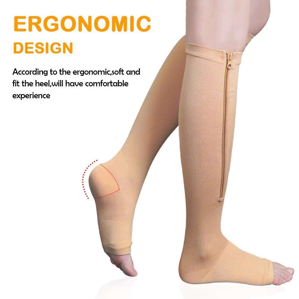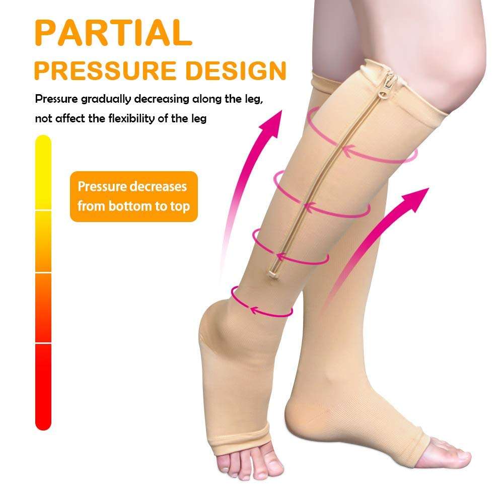 Stretchy Compression Stockings Zippered Stockings for Varicose Veins Sports Compression Stockings Open Toe Knee Support
