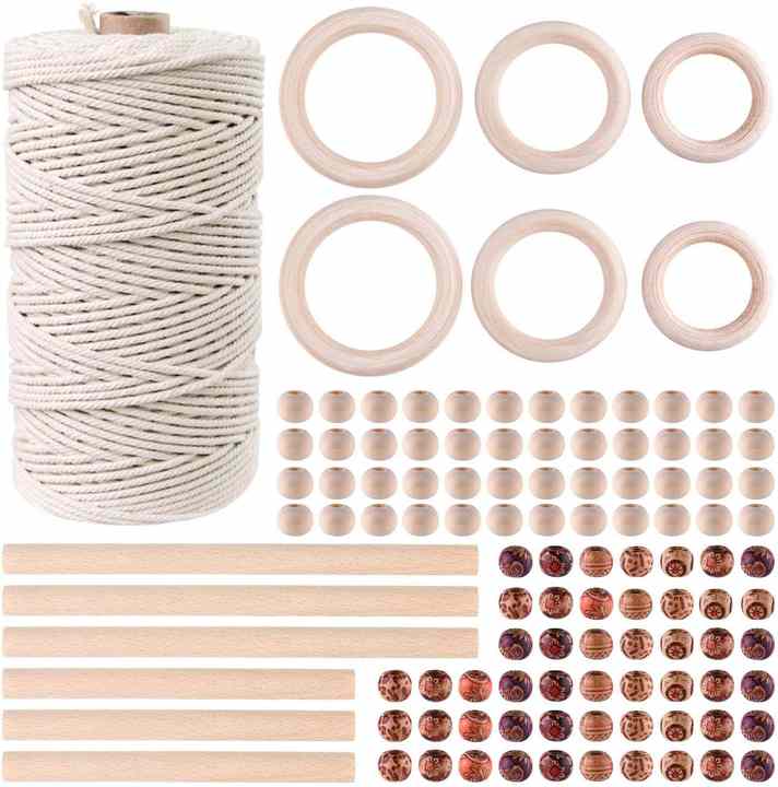 DIY Natural Cotton Rope Macrame Kit for Home Decor, Plant Hanging Holder, Wooden Stick Making, Macrame Beads Kit, Wholesale