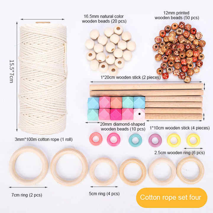 DIY Natural Cotton Rope Macrame Kit Home Decor Indoor DIY Plant Hanger Bracket Making Wood Stick Bead Macrame Kit Wholesale