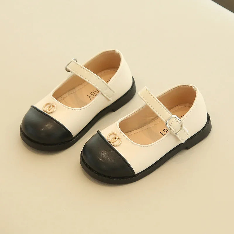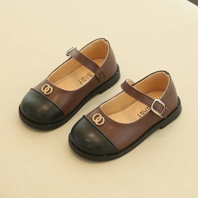 أحذية رقص للأطفال على الموضة الكورية للخريف ، أحذية أميرات من الجلد الناعم متناسقة الألوان للأطفال