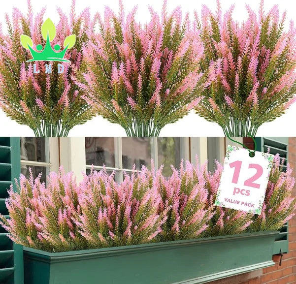 12 Pack Artificial Boston Fern Plants, UV Resistant Artificial Plastic Plants, Outdoor Decorations for Garden, Patio, and Windows