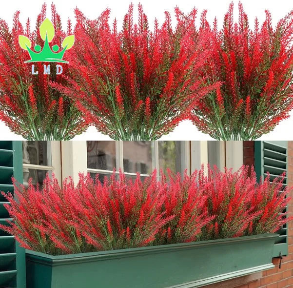 12 Bundles Artificial Plants Boston Fern Greenery Outdoor UV Resistant Faux Plastic Plants Garden Porch Window Box Decoration