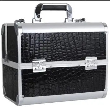 Leather Makeup Bag, Aluminum Makeup Box with 4 Trays, Nail Art Kit, Cosmetic Organizer, Travel Carrying Case