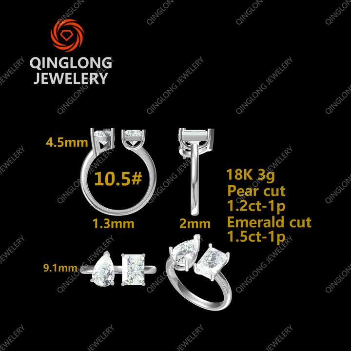 Custom 18K Solid Gold Ring Pear Emerald Cut Lab Grown Diamond Engagement Wedding Ring IGI Certification Jewelry