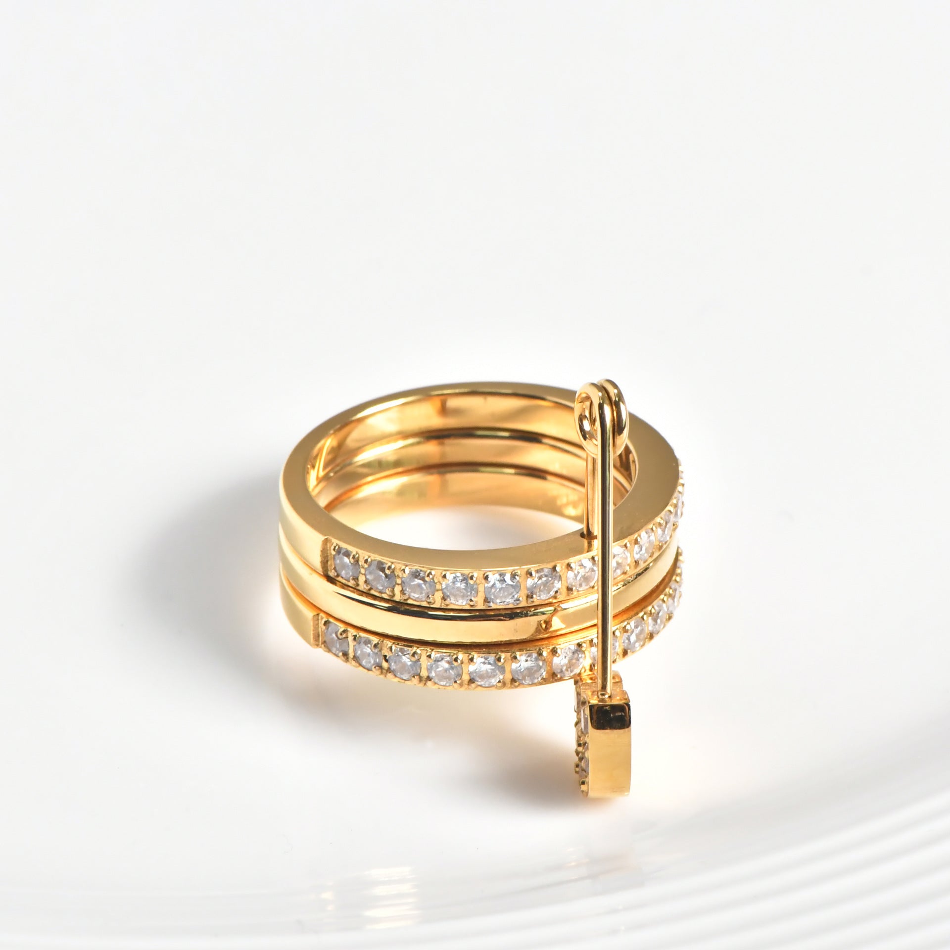 خاتم نسائي فرنسي أنيق بتصميم عتيق مرصع بالزركون، مصنوع من الفولاذ المقاوم للصدأ، عصري وفريد، خاتم راقي مع دبابيس فاخرة
